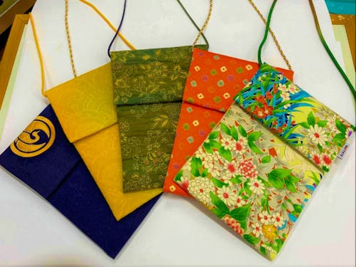 試行錯誤を重ね、洋服を仕立ててみたりもしましたが、人によってサイズの違うものをつくると端切れが出てしまうんですよ。少しでも生地を無駄にはしたくなくて。同じサイズで製作できて、洗濯不要でなおかつ『持ち歩けて人に見てもらえるもの』を考えて考えて、行きついたものが『サコッシュ』でした。」