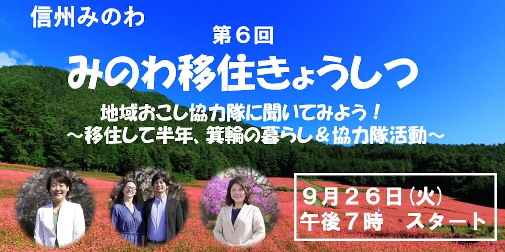 【移住セミナー】第6回みのわ移住きょうしつ(移住して半年、箕輪の暮らし&協力隊活動)
