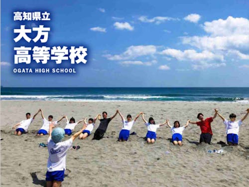 🌸大方(おおがた)高等学校 【自然、食、人 を堪能する】 黒潮町は、高知県の西南地域にあり、気候は温暖で年平均気温17度程度です。海の恵みにあふれ、自慢のカツオはもちろん、新鮮な魚介類がすぐ手に入り、地元で作られる野菜もとっても新鮮。そして、あったかい地域の方々。「食」と「人」のすごさをぜひ味わっていただきたいです。 町の推進する防災教育では、本校は町と連携して、地域の方と一緒に防災に関する課題解決に取り組み、命を守り地域を守ろうとする意識の高い人材育成をしています。