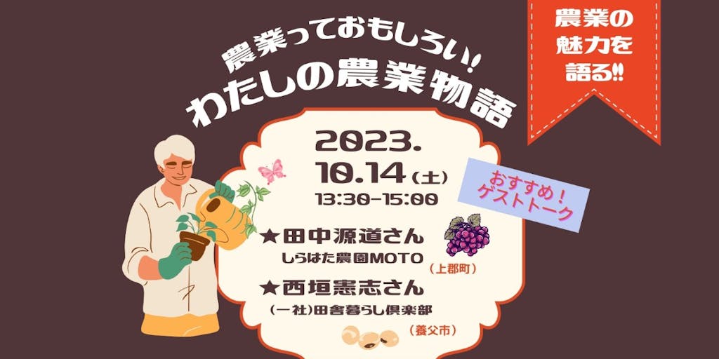 2023/10/13「~農業っておもしろい!~わたしの農業物語」が、 2023年10月14日(土)13:30~15:00に開催します。