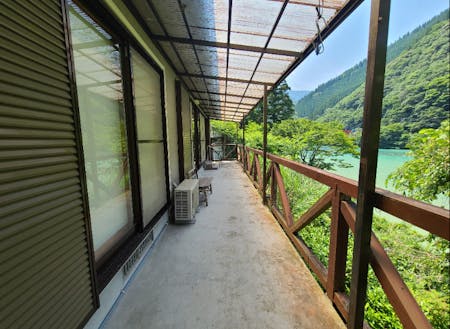 そんな椎葉村にあって、窓いっぱいに美しい川の景色が広がる珍しい物件があります。 晴れた日にはテラスでのんびりするのも良いですし、テラスの下には茶畑や畑があり、景色を楽しみながら農作業ができます。