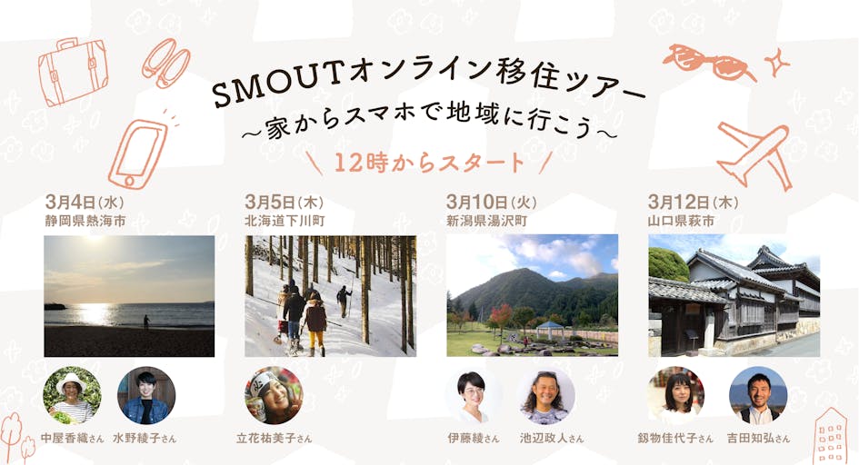今回、スマートフォンor PCとインターネット環境があれば、どなたでも参加できる SMOUTオンライン移住ツアー2020を企画・開催することにしました!
