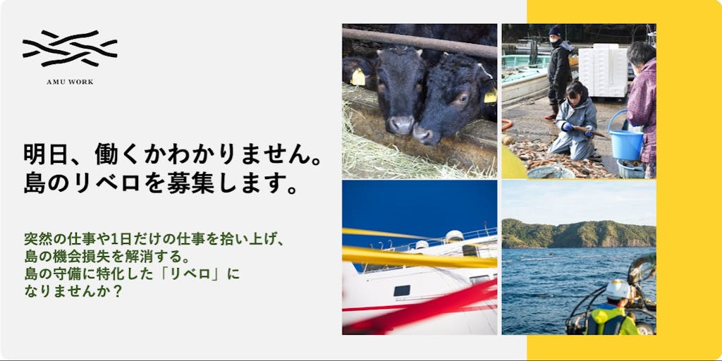 海士町には、人口減少などにより人材不足に悩んでいる事業所が数多くあります。 そんな人材不足を解決し、持続可能な地域にしていきたいという想いから「AMU WORK」は”島の事業者"と”島で働きたい人"を"複業"という形で繋いでいます。