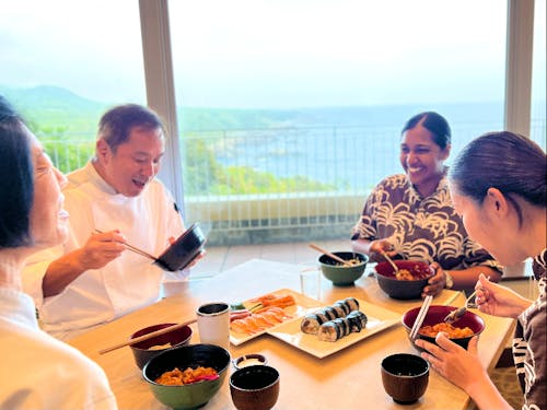 早朝に海でサーフィンを楽しんだり、家族ファーストの休日を過ごしつつほどよく働いたり、近所の人と仲良くなって物々交換をしたり、それぞれが自分に合う形で屋久島ライフを楽しみながら仕事に従事しています。