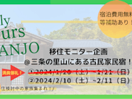 「古民家暮らし」を中心に、田舎での暮らしに興味を持つご家族を募り、ともに移住について考えるきっかけになってもらえるようなモニター企画をご用意しました!
