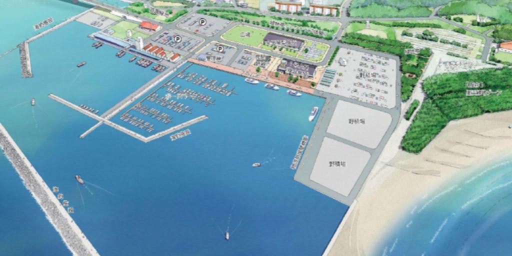 現在、芦屋港レジャー港化事業を推進しており、 物流港から観光レジャー要素を持った港としての活用に向けて、 様々な施設の整備が進んでいます!
