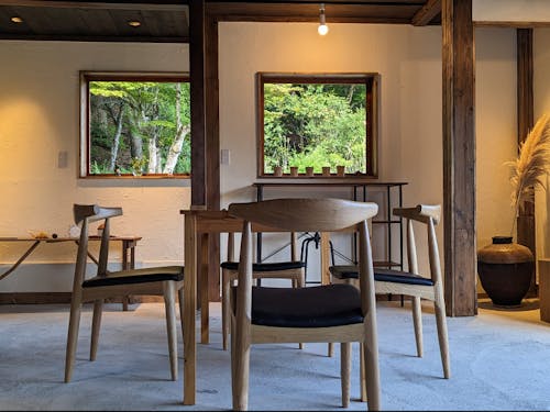 いざない湖北おすすめの空き家を見学した後はレンタルスペース兼ギャラリーの「森のハジマリ」へ。 ご夫婦で2年かけて古民家をリノベーションされた古民家は、地元木材を使用した木の器などの木工品が飾られるギャラリーとしてのみではなく、店舗と庭をレンタルスペースとして活用されています。 どこか懐かしく落ち着いた空間に、温かみのある木工品の数々。 旅の終わりには森を感じていただけます。