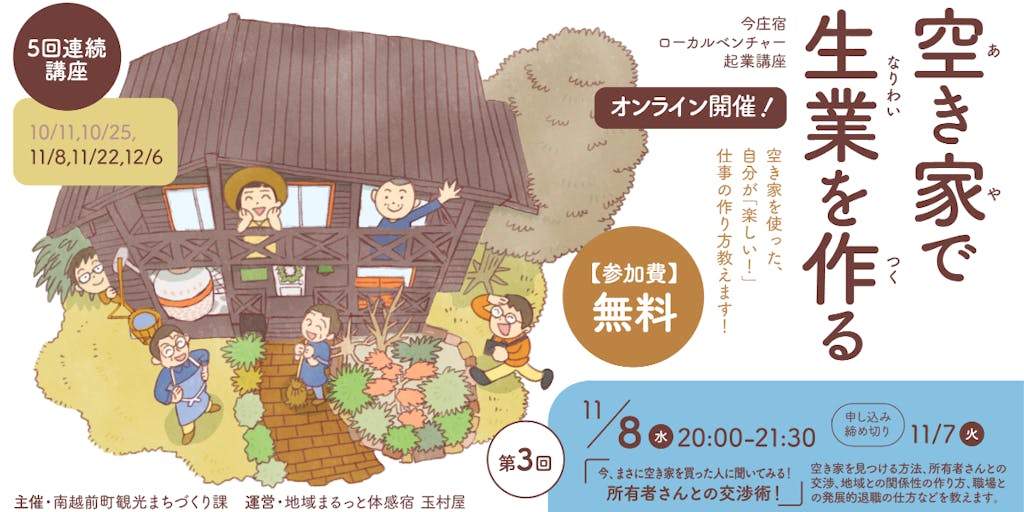 空き家購入の交渉術を教えます!空き家で生業をつくるオンライン講座参加者募集☆11月8日開催