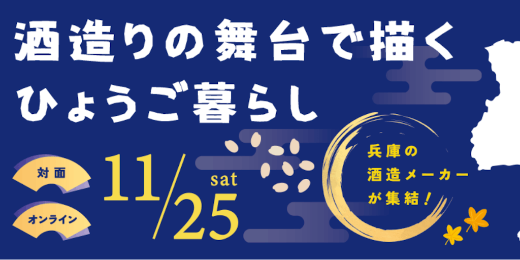 ・定員:20名 ・スケジュール: 13:00~13:15 オープニング 13:15~14:00 ゲストトーク(ゲスト:あおい有紀さん) 旅するフリーアナウンサー・和酒コーディネーター。 全国の酒蔵に350回以上も足を運び取材を行ってきたあおい有紀さんに、 兵庫だからこそなせる日本酒の魅力をお話いただきます。 14:00~14:55 兵庫のキラリ光る酒造メーカー 日本酒を造る5つの酒蔵をご紹介!自社商品の魅力から、 酒蔵のお仕事の特徴までたっぷりお伝えいただきます。 15:00~15:25 酒造メーカーとの交流会タイム もっと知りたい!と感じた酒蔵を1つ選び、じっくりお話できる交流会。 仕事について、会社について、気になること質問OK! 15:25~15:30 クロージング