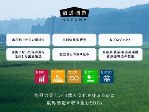※「若者が能登も農業も日本酒も盛り上げる!」をコンセプトにした学生主導の日本酒プロジェクト。数馬酒造をはじめとする能登の企業の支援のもと、耕作放棄地の開墾、完全無農薬の米づくり、仕込み、商品開発などをコンテンツ化し、能登の新たな魅力を発信している