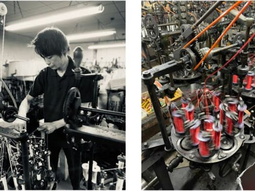 多田 寛さん(有限会社多田製紐) 福井県勝山市で組紐を製造する「多田製紐」の3代目。令和5年度勝山商工会議所青年部会長。 大学卒業後に織物営業を10年経験後、勝山で隆盛を誇った繊維産業の歴史を知り、「父の代で無くさないためにも自分に協力できることがあれば」と家業を継ぐ決意をし現職。