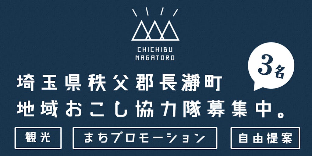 詳細・応募は下記特設WEBサイトをご確認ください。 http://www.town.nagatoro.saitama.jp/chiikiokoshi/ ※本応募には必要書類の提出が必要となります。サイトの募集要項をご確認の上、お申し込みください。