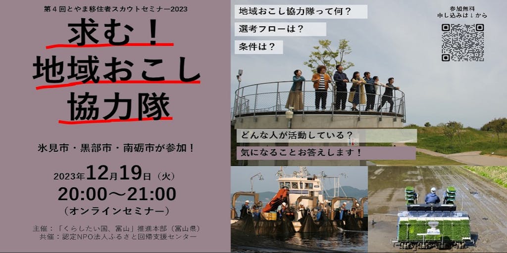 2023/12/19第4回とやま移住者スカウトセミナー2023 ~求む!地域おこし協力隊~をオンライン開催します!!