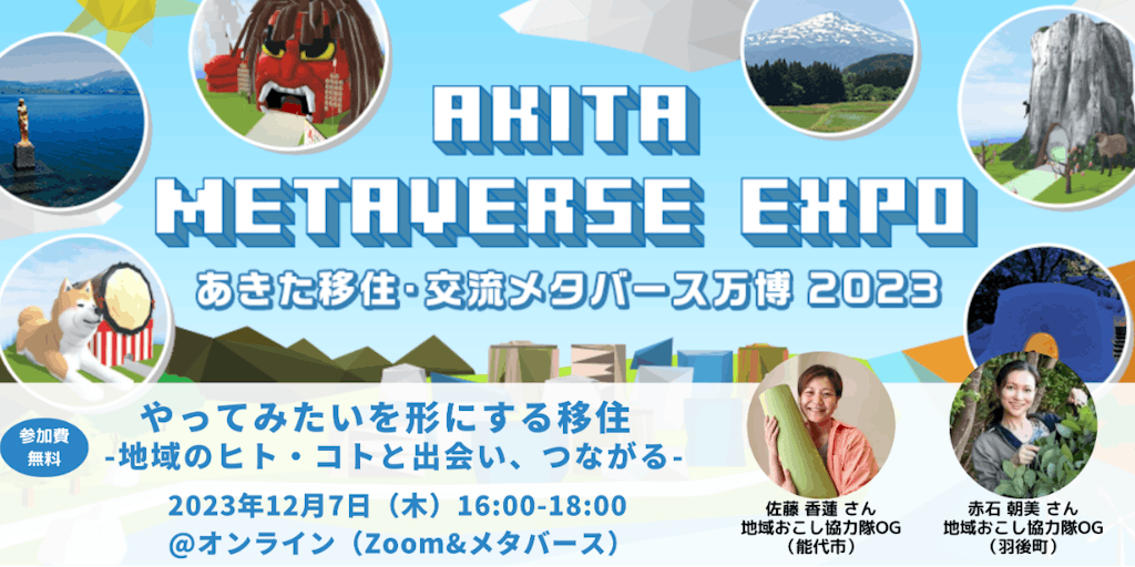 ▼詳細とお申し込みはこちら https://akitaijyukouryumetaverse20231112.peatix.com