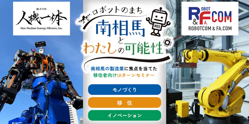南相馬市に進出し、研究や開発に取り組む「人機一体」と「ロボコム・アンド・エフエイコム(R&F)」の2社が出演し、南相馬で自動化・機械化に取り組む魅力をお話しします!