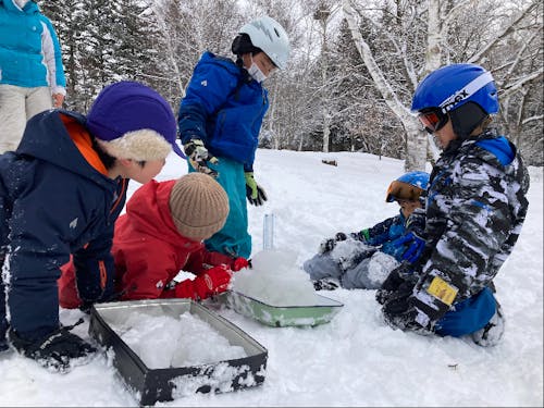 いいづな学園では、そうした「冬の楽しみと学び」を多くの人に体験してもらおうと、新たなイベントを企画しました。冬の飯綱高原に1泊2日で滞在し、雪の不思議さを学んだり、実験でダイヤモンドダストをつくったりする「冬の探究学習プログラム」です。幼稚園・学校見学の時間も設けました。こどもの森幼稚園は野外での保育が特徴で、そのエッセンスも体験できます。