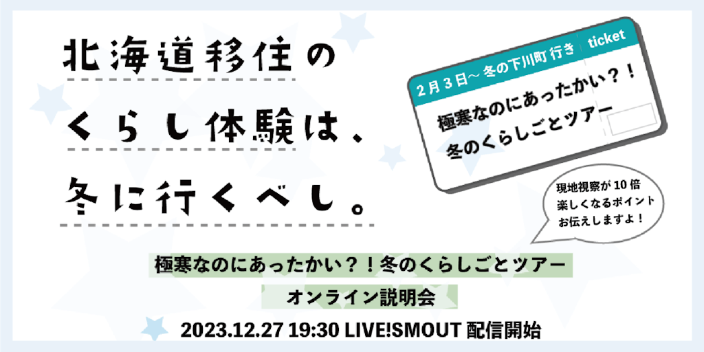 【LIVE!SMOUT】北海道移住のくらし体験は、冬に行くべし。【移住体験ツアー説明会】