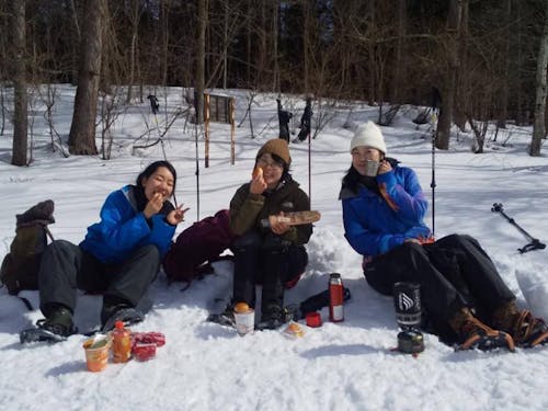 ●持ち物 ・防寒、防水性のある服装:スキーウエア、冬用の登山ウェアなどが上下必要です。登山用レインウェアでも可。インナーは化繊やウールがお薦めです。 ・帽子:ニットなどの耳を隠せるもの。 ・グローブ:防寒、防水性のあるもの。スキーなどで使うもの。 ・ダウンやフリースなどの防寒着 ・サングラスもしくはゴーグル:晴れた場合、雪の照り返しがきつくなります。 ・日焼け止め:雪焼け対策。 ・飲み物 ・昼食:パンやカップスープなど。(お湯はこちらでご用意可能です。)おにぎりなどお米は冷たくなってしまうのでおすすめしません。