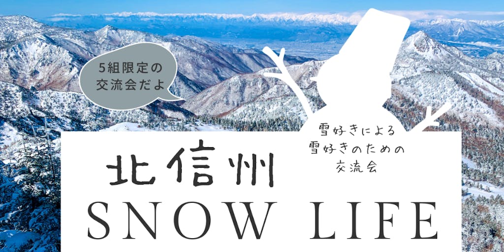 北信州は雪が降る雪国です。 場所によっては豪雪地帯もあり、雪と暮らしは切っても切り離せません。 そんな北信州の暮らしと相性が良いのではないかと思われる、アウトドアやスキー・スノーボードが好きな方にぜひ北信州の暮らしの魅力と大変さも含めありのままを知ってほしいと思い、同じような思いを持って移住した4人の移住者との交流を通じて、より深くそして正しく知ってもらいたくて、この交流会イベントを企画しました。 木島平村、中野市、山ノ内町のお隣3市町村合同のイベントです。