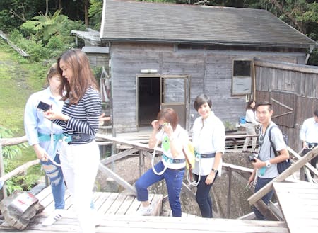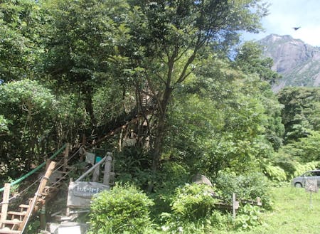 □ 島の森がだめになる!? 樹木の根っこが露出した細い登山道を観光登山者が往復する。 特に雨の日に受ける根っこのダメージは計り知れない。 □ じゃあ、どうすればいい? 簡単です。・登山ルートを全部人工道とする・入山者数制限・入山料制度導入・島内分散化観光・・・ 実施にはそれぞれにハードルがありますが、「梢回廊キャノッピ」は分散化観光を選び、 今までにない視点から自然を楽しんでもらう施設で提案という道を選択しました。 □ 武(舞)空術さえ使えたら アニメのようにはまだ人間は空を自力移動できません。どうしても二足歩行で森に入ってゆく。 じゃあ、空中を移動する体験を提供して、今一度自然との付き合い方を考え直してもらおう。 この提案は景観の荒廃を避け、子々孫々に自然を伝え残していくという手立てにつながる。 □ エー、「梢回廊キャノッピ」ってガチガチの考えなの? 説明に力が入ったようで、ドーモスミマセン。キャノッピのモットーは、来園者の笑顔です。 その笑顔に出逢いたくていろんな仕掛けが満載です。 □ コンセプトのはっきりしたテーマパーク 屋久島は鹿児島県内で奄美大島に次ぐ503平方キロの大きな島。島にはなんと九州一高い山まであり、 基本的に標高300メートル以上は国有地。 「梢回廊キャノッピ」は島の南、標高150メートルの民有林で展開されている。 □ 今後どのような味付けをしてゆくかだ。 20周年、25周年と将来に向け今後どのような味付けなり継承が必要なのだろうか。