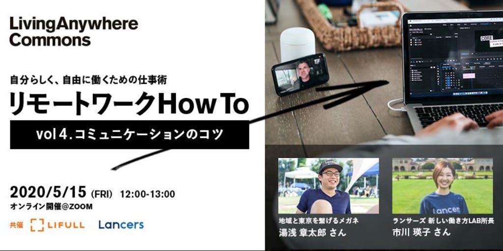 2020/05/21在宅でも「自分らしくを、もっと自由に。」を共創し、実践しよう。 共創型コミュニティ『LivingAnywhere Commons』と、日本最大級のお仕事マッチングプラットフォームを運営するランサーズのコラボイベント!