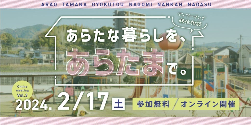 【2/17】あなたらしい暮らしを一緒に考える。(熊本県)あらたま地域オンライン移住相談