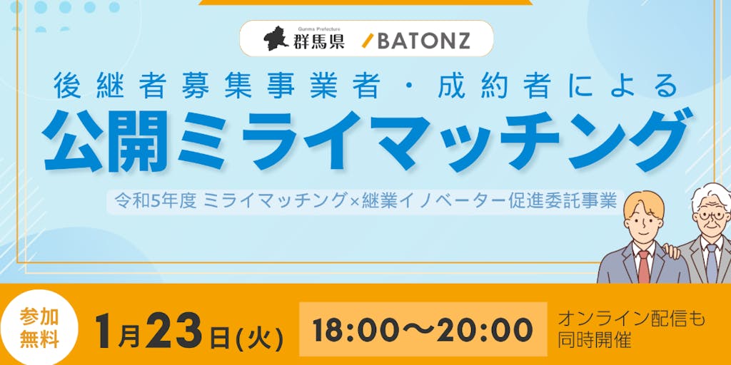 【1/23(火)18:00~】後継者募集事業者・成約者による公開ミライマッチング