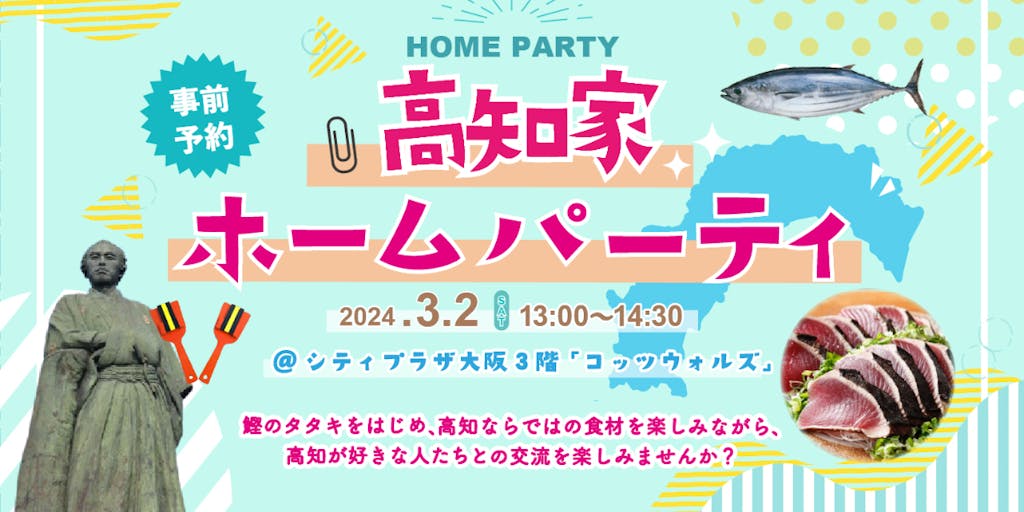 高知家で暮らし隊会員限定!高知家ホームパーティー開催♪大阪で移住コンシェルジュと楽しく交流