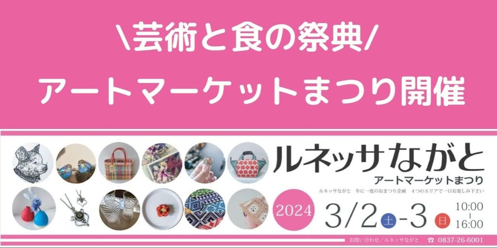 2024/05/133月2日(土)・3日(日)の2日間、山口県長門市にある、ルネッサながとで「アートマーケットまつり」が開催されます。 今年もさまざまなジャンルの催しが盛り沢山!