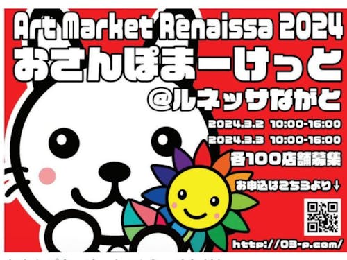 ①<Art Market Renaissa 2024> 日時:3月2日(土)・3日(日)10:00~16:00 県内で活動するアーティストによるマーケット。 個性的な作家・飲食店約80店舗が集結! 約60名の作家による、アート作品が並びます。 ※屋外にキッチンカーエリアもあります。