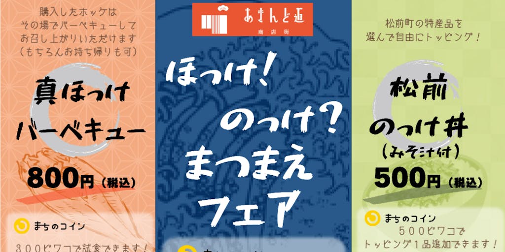 2月17日(土)に、滋賀県近江八幡市のあきんど道(みち)商店街にて「北海道松前町のウマイが大集合!ほっけ!のっけ?まつまえフェア」が開催されます!
