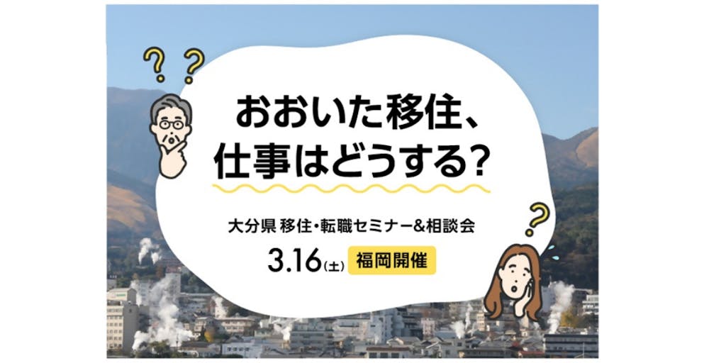 理想の家やしごとが見つかれば、すぐに移住したいという方が増えています。 当日は大分県から7の市町と就職・転職支援の担当者が福岡の会場に集合します。 しごとや家探しのサポート情報から、近所付き合いの話まで、気になっている事を相談しませんか?