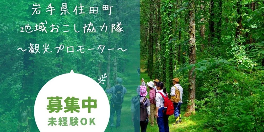 <業務概要> ・住田町観光協会業務全般の補助 ・住田町観光協会職員と共に各種イベント業務やツアーアテンドの調整・実施 ・周辺自治体や関係団体と連携した町外でのプロモーション活動、旅行業者等への観光プレゼンテーションの実施 ・SNS等を活用した観光情報の発信(週1回以上) ・発展的な業務として、新たな観光コンテンツの開発など、観光交流人口の拡大に資するアイデアやアクションを積極的に実践されることを期待します