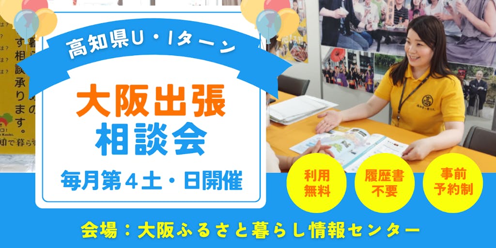 👇開催日・お申込みはこちらから! 【高知県U・Iターン大阪出張相談会 特設サイト】 https://kochi-iju.jp/lp/osakasoudankai/index.html