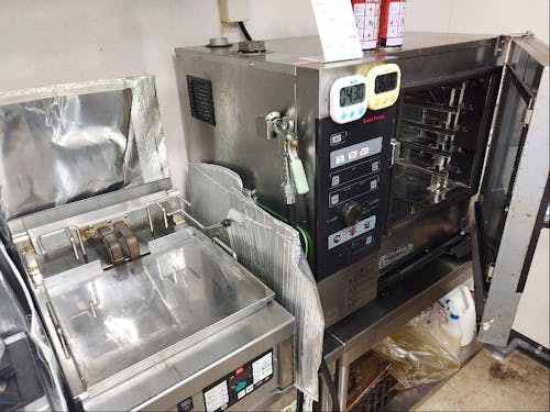 ———— 厨房も広くて綺麗ですね! 便利な設備がすべて揃っていますよ!これなんて秋刀魚が一度に30匹焼けるスチコン(スチームコンベクションオーブン)。新しい機材は高齢者には使いこなせないんですがね(笑)。厨房設備はもちろんですし、店舗側のショーケースや空調設備も5年くらいしか使ってないのでほぼ新品!同じ業態で開業したい方には最高の居抜き物件だと思いますよ。