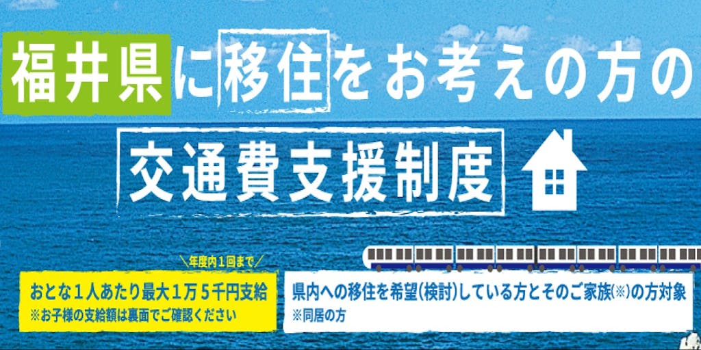 2025/02/10こんにちは! 福井県では、福井県への移住をお考えの方の交通費支援制度を行っています! しごと探しや住まい探し、お試し移住など、移住前の準備にご活用ください!