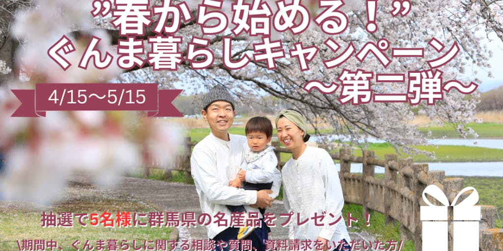 そんな群馬県では、「“春から始める!”ぐんま暮らしキャンペーン~第二弾~」を開催中です!!(4/15~5/15)