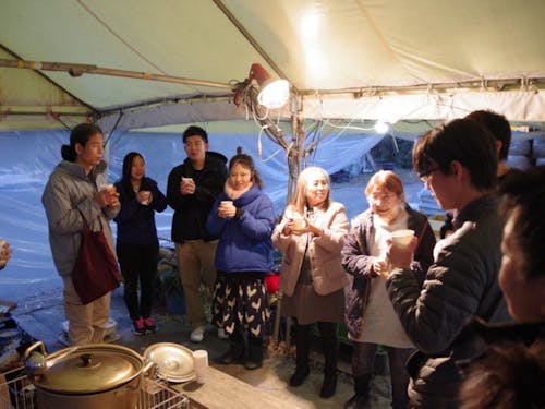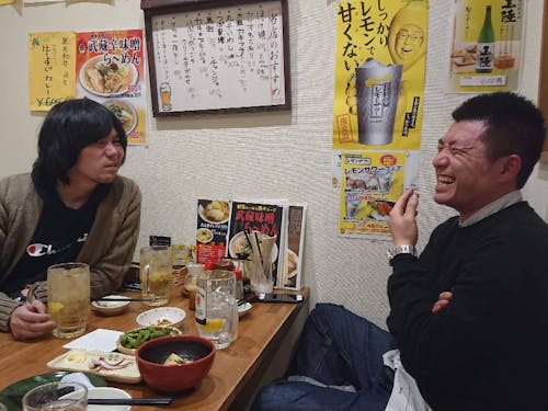勤務を終えた人たちが向かうのは、軒先にたつ小さな居酒屋。 りんご農家のお兄さん、地域住民の相談役のお姉さん、ラーメン屋のおじさん。 海から陸に上がり、ヤッケ姿で向かう人も。あ、乾いたわかめが付いてる。 働いた後の生ビールは美味い。今日やらかしてしまった事も笑えてくる。 今日失敗したこと、面白かったこと、最近モヤモヤすること。 様々な話が飛び交う。それを酒と一緒に喉に流し込む。 「これでいいんだなあ。」 「いいべ、逃げてもいいんだべ。」 「この刺身美味しい!マスターもう一杯!!」 笑ったり泣いたり、なんてことのない時間も彼らにとっては「居場所」な居酒屋だ。 こうやって毎日がなんとか続いていく。人生そんなものだ。 ここは人生横丁。明日のために、今日も立ち寄ってみた。 さて、今夜もいつもの乾杯をーー。