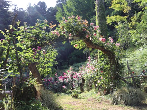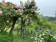 「里山ローズ」はこの地区に住むご夫婦が二人で営んでいるバラ園で、約15年前に荒廃する里山を再生しようと、実家の庭や耕作放棄地、周辺森林の管理をする目的で始められました。始めは友人・知人のみに開放していたバラ園ですが、バラの種類が充実してきたのをきっかけに、2016年からは一般公開されるようになりました。