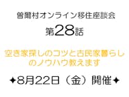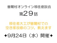■□これまでの開催テーマ□■ 第1話:曽爾村移住、はじめの一歩 第2話:田舎って実際、どうなん? 第3話:曽爾村での、子育て移住 第4話:空き家探しのコツ、教えます *人気回* 第5話:移住と起業 第6話:空き家改修、する人・した人 *人気回* 第7話:シビアやけどオモロイ農業 第8話:曽爾村の観光ビジネス 第9話:移住お試し住宅、使ってみました 第10話:空き家探しのコツ、教えます *人気回* 第11話:曽爾村移住の心得 第12話:地域で生きるお金の稼ぎ方