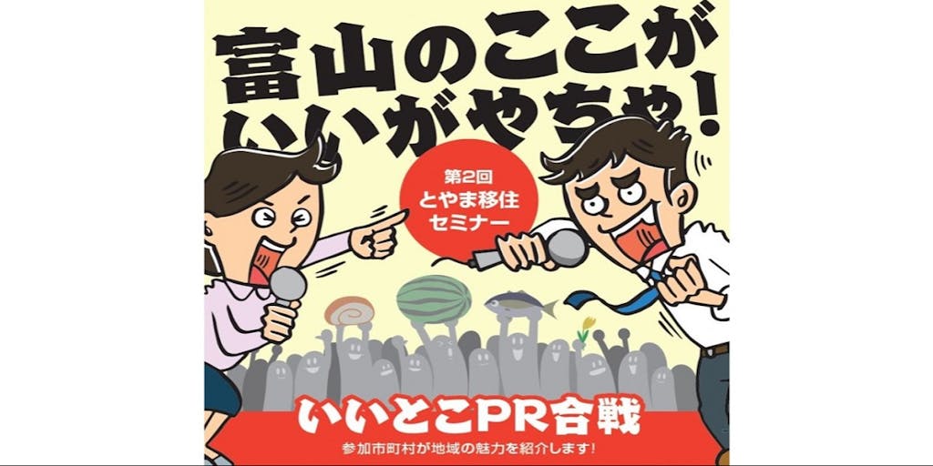 2024/05/22今回のテーマは「いいとこPR合戦」 全15市町村のうち13市町の担当者が集結し、それぞれの地域の魅力をPRするので、 ぜひご自身に合う地域を見つけてみてください。 富山県に行かれたことがない方も、移住先をどこにしようか悩んでいる方も、 富山ってこんなところなんだ!と知る機会になればと思います。 まだ移住すると決めたわけではない方も、地方の暮らしを検討するきっかけになれば嬉しいです。 ウェビナーでの開催なので、顔を出したり発言したりする必要はありません。 ご質問はチャットで頂けます。ぜひお気軽にご参加ください!