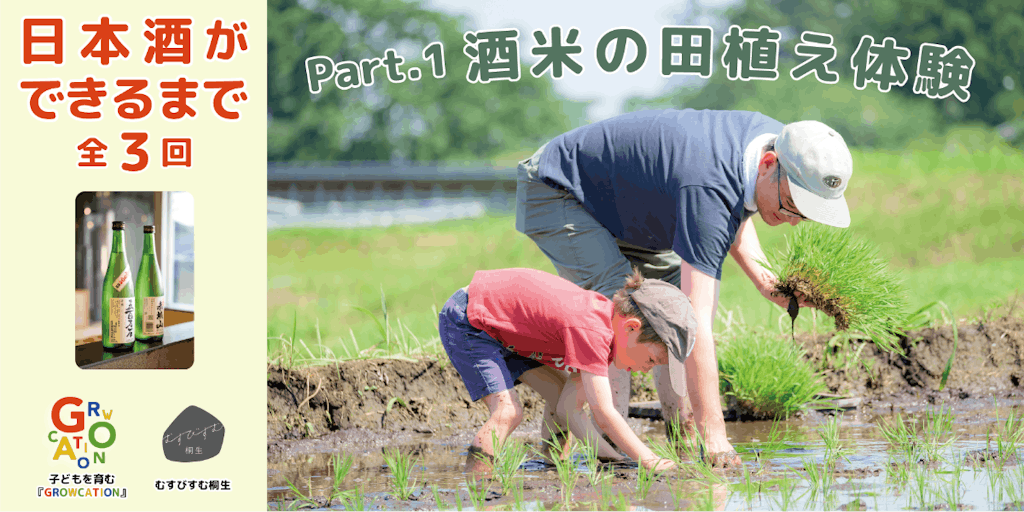 『日本酒ができるまで』の体験プログラムを3回に分けて実施します。 Part.1:酒米の田植え体験 6月15日(土) Part.2:稲刈り体験と収穫祭 9月28日(土) Part.3:酒蔵見学とおちょこ作り 来年2月予定 =後日、桐生市産の酒米で仕込んだお酒が完成したらお届けします!=