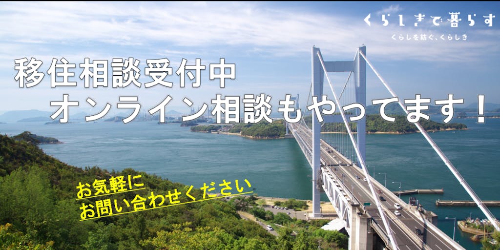 倉敷市とのオンライン相談でも、この「くらしき移住就労サポートデスク」のスタッフも同伴してお話することができます。 希望する方は、申込の際に、「くらしき移住就労サポートデスクとも話がしたい!」とお伝えください。