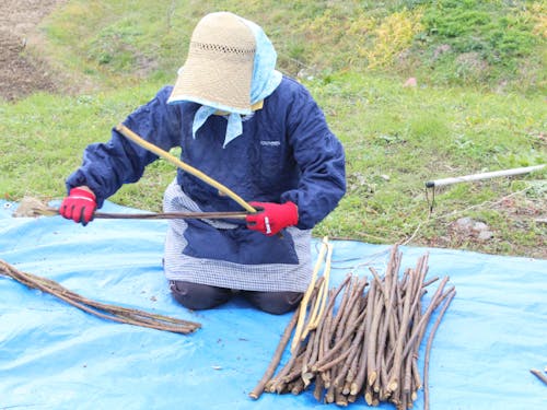 畑作業は地域のボランティアの方に協力いただいて草刈りや芽欠きなどをしており、美しい紙を作るためには太くまっすぐな楮を育てる必要があるので、畑作業は大切な仕事です。
