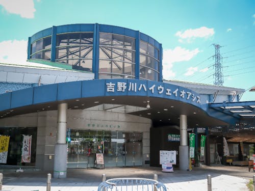 徳島県自動車道の吉野川SAに隣接する「吉野川ハイウェイオアシス」。 四国の産品が集まる物販コーナーや、地元野菜の産直、飲食店、サウナを備えた温泉、公園、屋内遊具施設、コワーキングスペースなどが揃います。