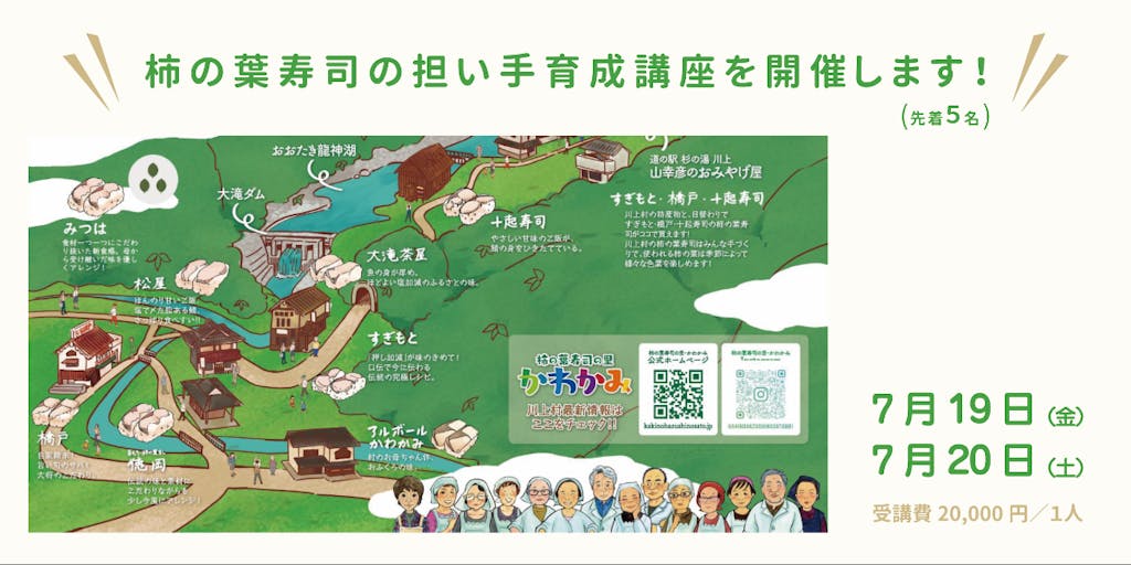 2024/07/18柿の葉寿司の個人商店のお店がたくさんある川上村で、直々に柿の葉寿司の担い手を目的とした育成講座をはじめます。