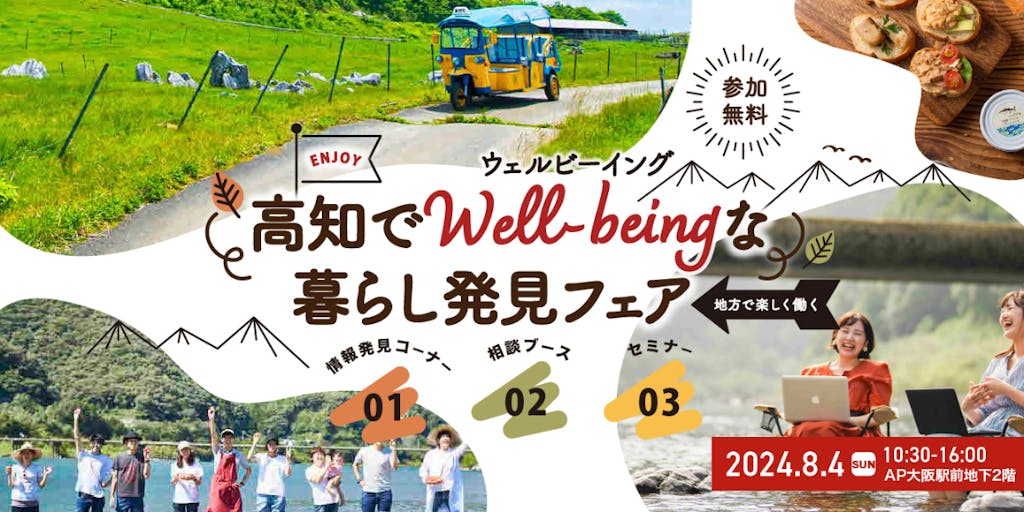 【8/4・大阪】地方で楽しく働く!高知でウェルビーイングな暮らし発見フェア✨来場特典あり!