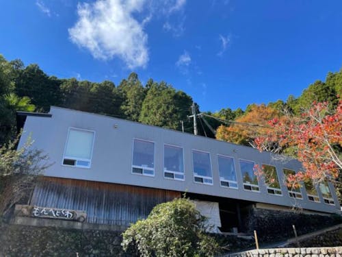 ─────────────────── 田辺市龍神村の街道添いのカフェと民泊「もんぺとくわ」。もともとホテルで調理師をつとめていた下山英範さんと下山眞実さんご夫婦が、自分たちが食べるものは、自分たちで育てたいと龍神村に移住し、オープンしたカフェです。お店の名前は、もんぺ姿で畑仕事に精を出す二人の姿からつけられました。