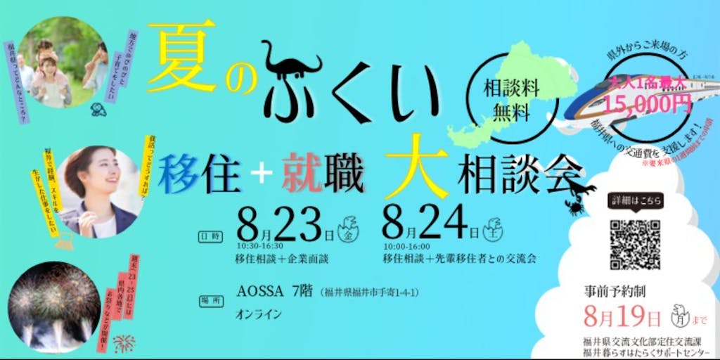 【イベント概要】 イベント名:夏のふくい移住+就職大相談会