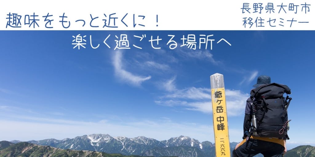 大町市には様々な趣味を楽しんでいる先輩移住者がたくさんいらっしゃいます! どんな生活をしているのか、仕事やお金のこと、移住の体験談などお聞きします。 「大町市ってどこ?」という方の大歓迎!この機会に何でも聞いてみましょう!